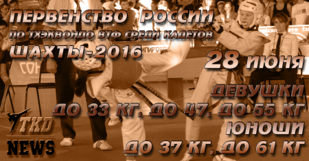 Сегодня, в городе Шахты Ростовской области, стартует Первенство России по тхэквондо ВТФ среди кадетов (2002-2004 года рождения). В первый день в спор за медали вступят девушки до 33 кг, до 47, до 55 кг и юноши до 37 кг, до 61 кг. Сетки первого дня в прилагаемых файлах. Прямая текстовая трансляция будет вестись в комментариях нашего паблика "TKD-NEWS". Всем спортсменам - удачи и честной борьбы!