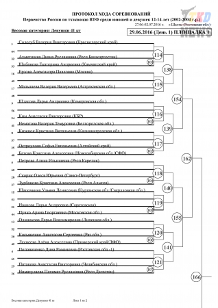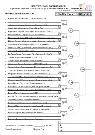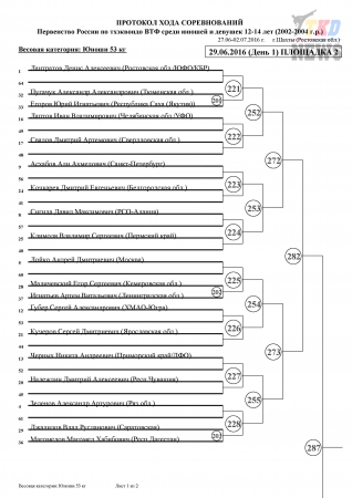 Первенство России по тхэквондо ВТФ среди кадетов, Шахты-2016. День второй. Сетки.