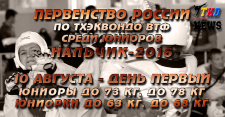 В первый день Первенства России по тхэквондо ВТФ будет разыграно четыре комплекта наград: в весовых категориях у юниорок до 63 кг, до 68 кг и у юниоров - до 73 кг, до 78 кг. Сетки первого дня в прилагаемых файлах. Следить за ходом соревнований можно будет в текстовой трансляции в комментариях нашего паблика "TKD-NEWS".