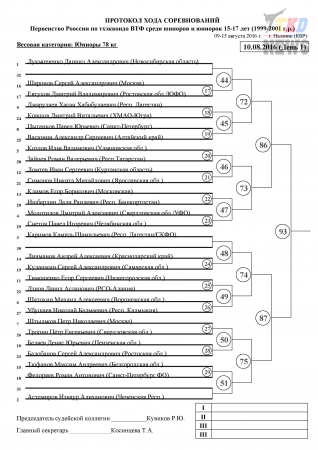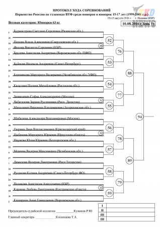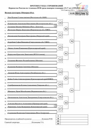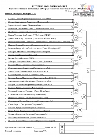 Первенство России по тхэквондо ВТФ среди юниоров, Нальчик-2016. День первый. Сетки.