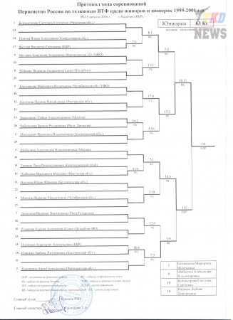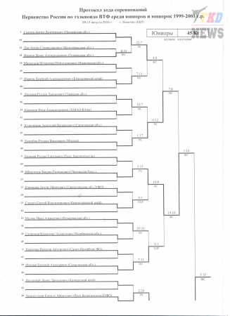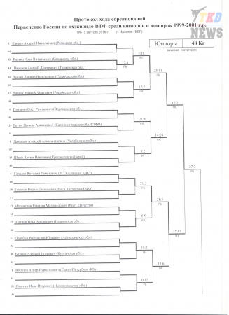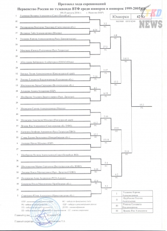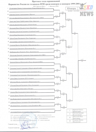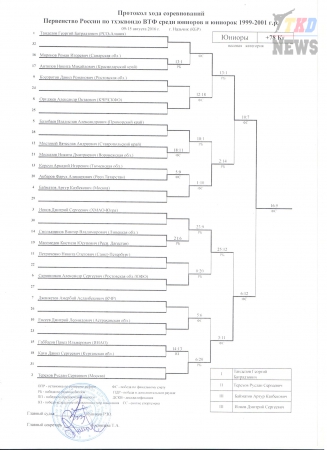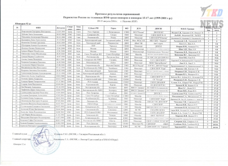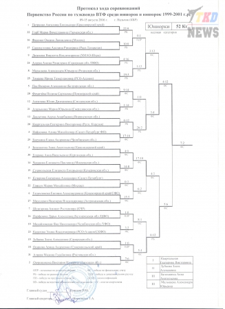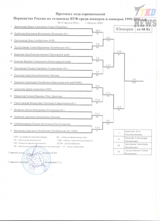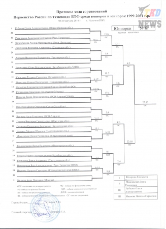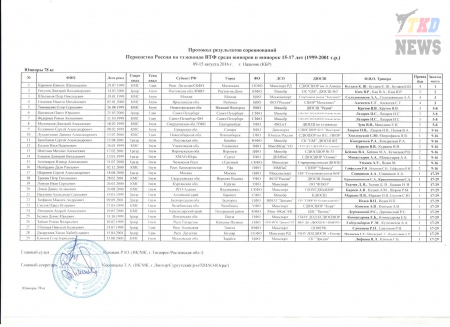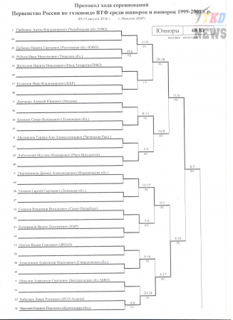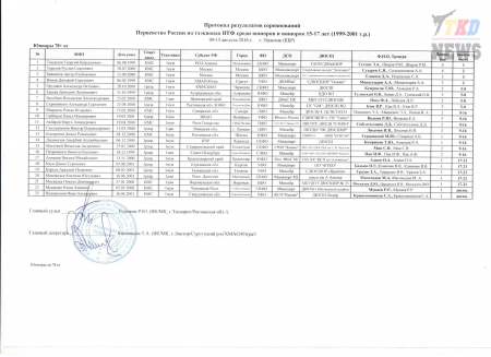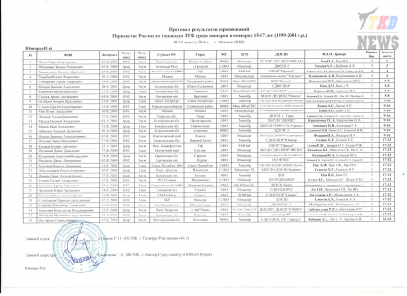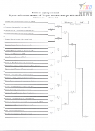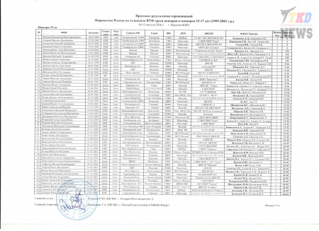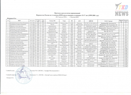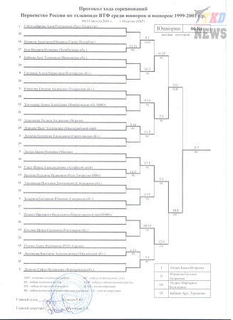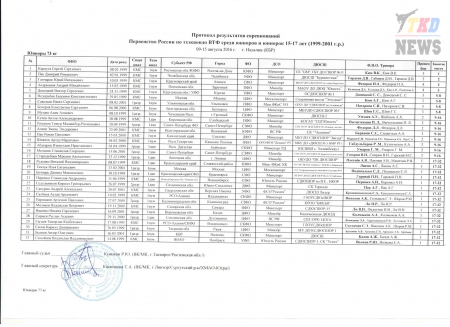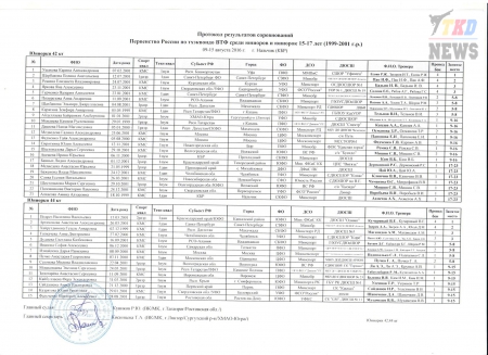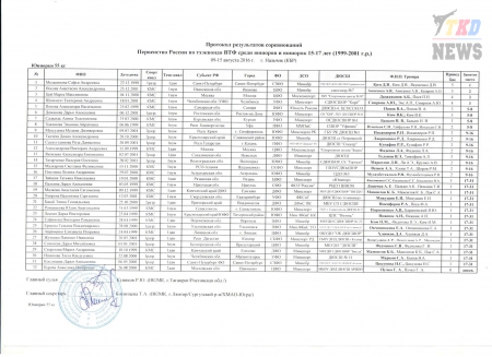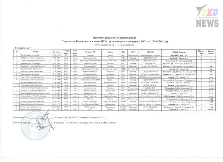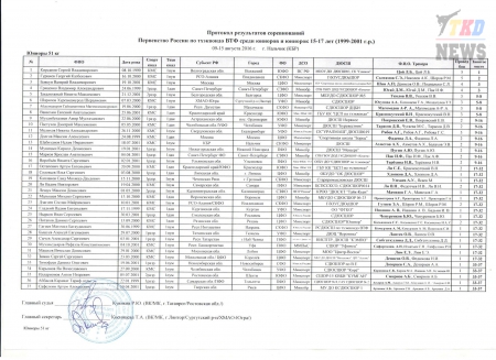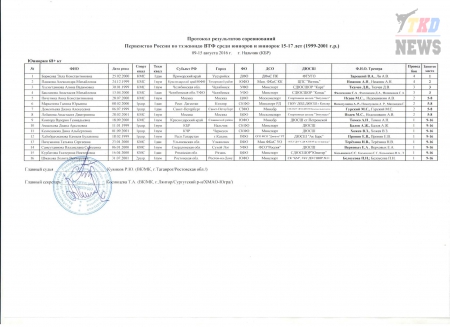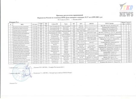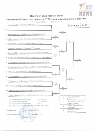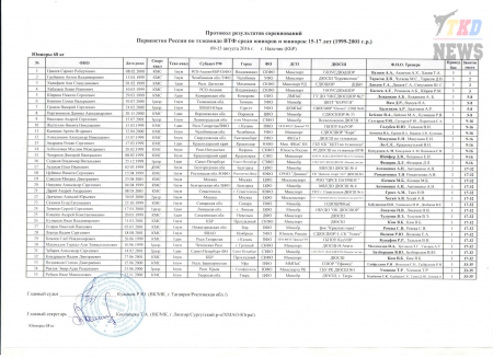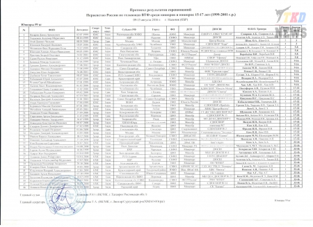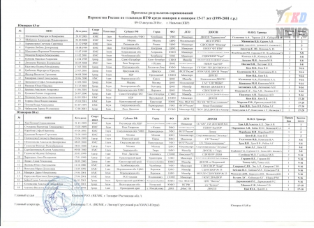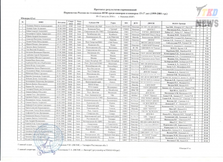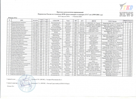 Первенство России по тхэквондо ВТФ среди юниоров и юниорок, Нальчик-2016. Итоговые протоколы без сеток. (Size: 966.76 Kb. Downloads: 174)