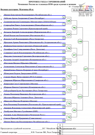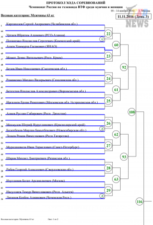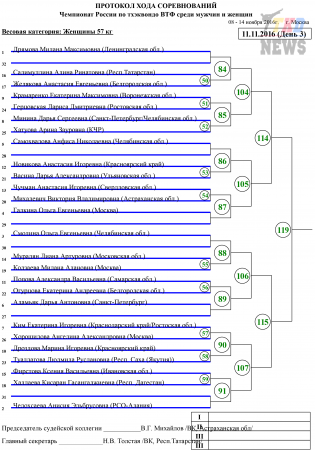 Чемпионат России по тхэквондо ВТФ, Москва-2016. День третий. Сетки.