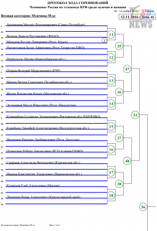 Чемпионат России по тхэквондо ВТФ, Москва-2016. День четвёртый. Сетки.