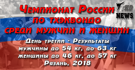 Чемпионат России по тхэквондо WT, Рязань-2018. День третий. Результаты.