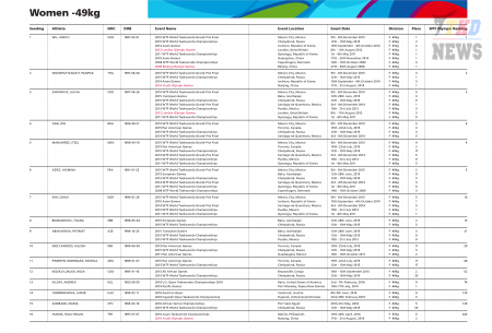 XXXI летние Олимпийские Игры Рио-2016. Тхэквондо ВТФ. Женщины до 49 кг. Список. (Size: 166.17 Kb. Downloads: 111)