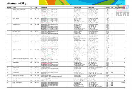 XXXI летние Олимпийские Игры Рио-2016. Тхэквондо ВТФ. Женщины свыше 67 кг. Список. (Size: 165.69 Kb. Downloads: 49)