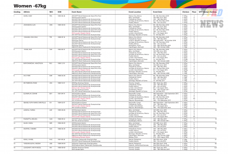 XXXI летние Олимпийские Игры Рио-2016. Тхэквондо ВТФ. Женщины до 67 кг. Список. (Size: 165.1 Kb. Downloads: 76)
