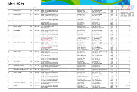 XXXI летние Олимпийские Игры Рио-2016. Тхэквондо ВТФ. Мужчины свыше 80 кг. Список. (Size: 163.79 Kb. Downloads: 64)