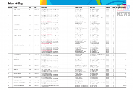 XXXI летние Олимпийские Игры Рио-2016. Тхэквондо ВТФ. Полный список участников. (Size: 118.36 Kb. Downloads: 49)