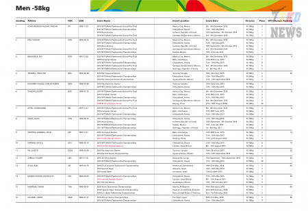XXXI летние Олимпийские Игры Рио-2016. Тхэквондо ВТФ. Мужчины до 58 кг. Список. (Size: 165.28 Kb. Downloads: 82)