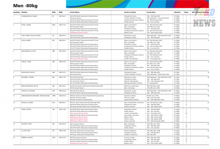 XXXI летние Олимпийские Игры Рио-2016. Тхэквондо ВТФ. Мужчины до 80 кг. Список. (Size: 164.63 Kb. Downloads: 84)