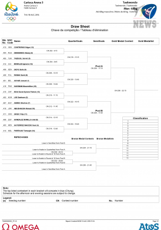 XXXI летние Олимпийские Игры Рио-2016. Тхэквондо ВТФ. Мужчины до 68 кг. Сетки. (Size: 177.27 Kb. Downloads: 292)