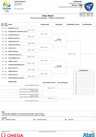 XXXI летние Олимпийские Игры Рио-2016. Тхэквондо ВТФ. Женщины до 57 кг. Сетки. (Size: 176.74 Kb. Downloads: 85)