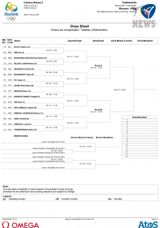 XXXI летние Олимпийские Игры Рио-2016. Тхэквондо ВТФ. Женщины до 49 кг. Сетки. (Size: 177.38 Kb. Downloads: 128)