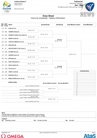 XXXI летние Олимпийские Игры Рио-2016. Тхэквондо ВТФ. Мужчины до 58 кг. Сетки. (Size: 176.79 Kb. Downloads: 160)