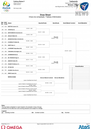 XXXI летние Олимпийские Игры Рио-2016. Тхэквондо ВТФ. Женщины до 67 кг. Сетки. (Size: 176.35 Kb. Downloads: 152)