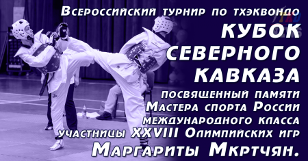 16-18 октября 2015 в городе Ессентуки состоится детско-юношеский Всероссийский турнир по тхэквондо ВТФ "КУБОК СЕВЕРНОГО КАВКАЗА", посвященный памяти Мастера спорта России международного класса, участницы XXVIII Олимпийских игр Маргариты Мкртчян.