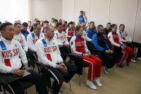 Перед встречей министр осмотрел базу в сопровождении главы городского округа Красноармейск Александра Овчинникова и генерального директора ОАО «Красноармейск» Олега Шаганенко. Ознакомившись с условиями для тренировок, восстановления, питания и проживания спортсменов, В. Мутко высоко оценил их уровень.