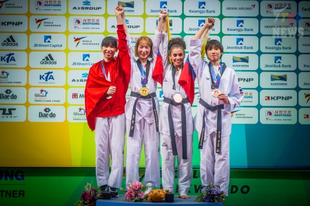 Во второй день Чемпионата Мира по тхэквондо ВТФ были разыграны два первых комплекта наград. Корейские спортсмены продемонстрировали своё превосходство в наилегчайших весах, завоевав сразу две золотые медали. В весовой категории у женщин до 46 кг чемпионкой стала Jae-Young SIM. У мужчин до 54 кг Tae-Hun KIM в третий раз подряд выигрывает титул Чемпиона Мира.